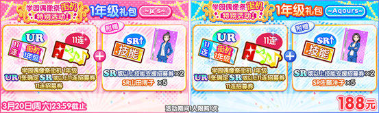 ・1年级生限定UR1张确定SR或以上11连招募券〜Aqours〜(1张)