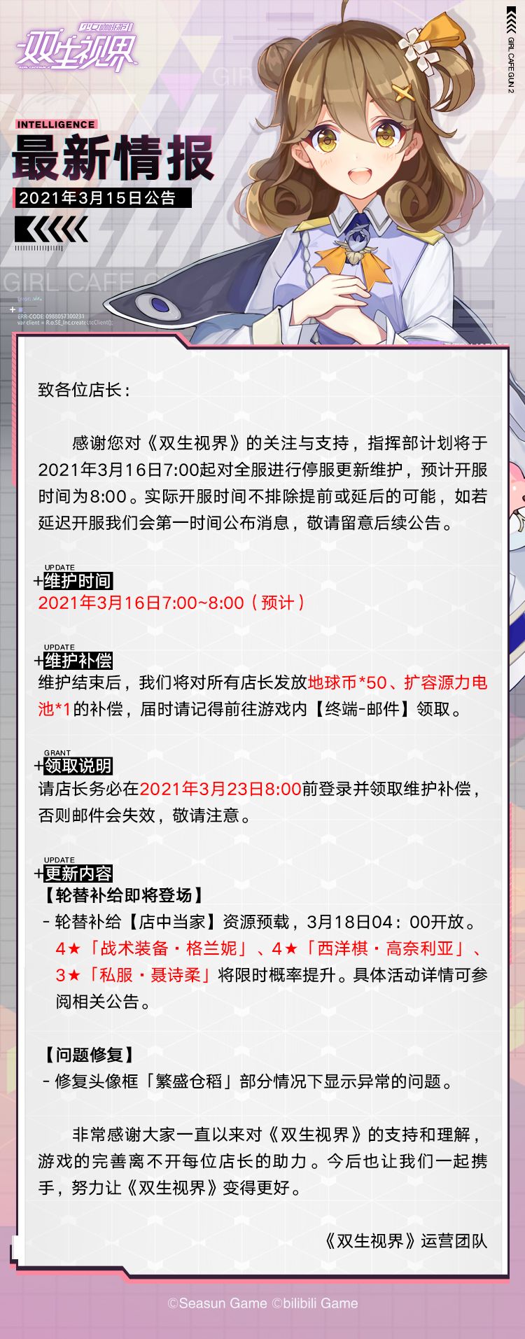 【双生视界】3月16日维护公告