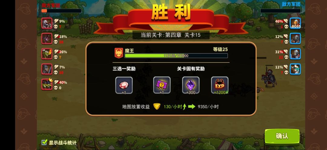 骑兵对冲,哥布林先知减对面骑士伤害,炮兵在后面拼命输出,把上面的一波打赢。顽魔扑后排,不过没秒掉,还剩三个祭祀。但靠骷髅战士复活在前面抗BOSS,最终被炮兵一波带走。这个阵容我试了几次,第一次BOSS还差一丝血,这次终于打赢了。多试几次应该能过。