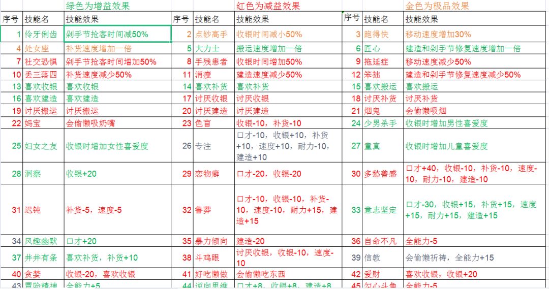 33号意志坚定是增益技能,你没看错。。除了需要口才的首席,其余补货,收银,搬运,建筑任意人这个技能都适合用。