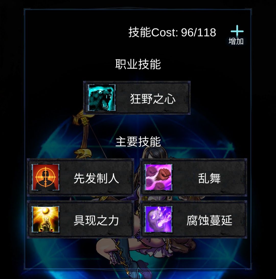 狂野之心能让乱舞多打10下,抉择加具现给对面50+层毒,所以腐蚀蔓延增伤500%+,无聊的兄弟可以试试,我大贤者推的关试不出来效果