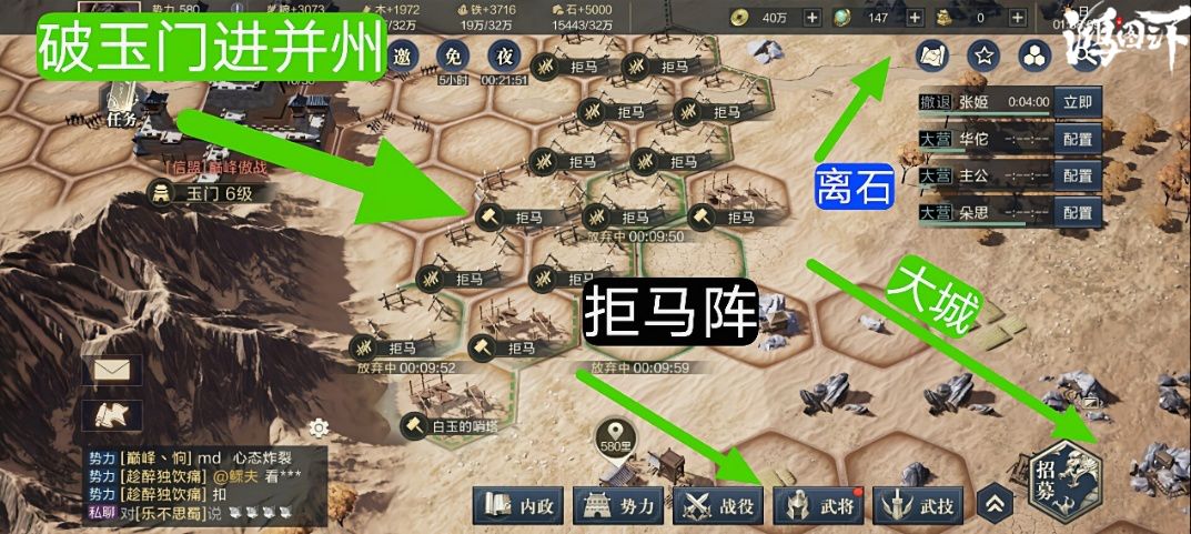 然次日中午围攻“离石”时,被白玉援兵血退。白玉随即下“大城”,次日晚反攻“玉门”。巅峰怒杀白玉70余队拆迁使其当场劝退,随即白玉再攻“玉门”,巅峰终以惨重的代价夺回玉门关。