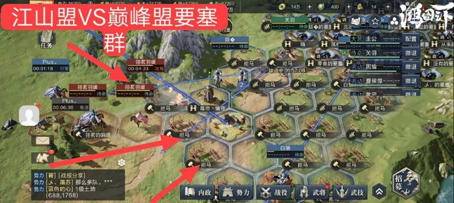 2021年1月15日07:00开始,巅峰死战军在前,送死之势铁头往白玉、江山两边直撞,拆迁盟友随后,一同接替夜班,扩大要塞拒马阵优势。“两班倒模式“一转“河内”要塞群局势。在强势猛攻下,白玉、江山主力没有持续增援,一退再退,士气已崩。
