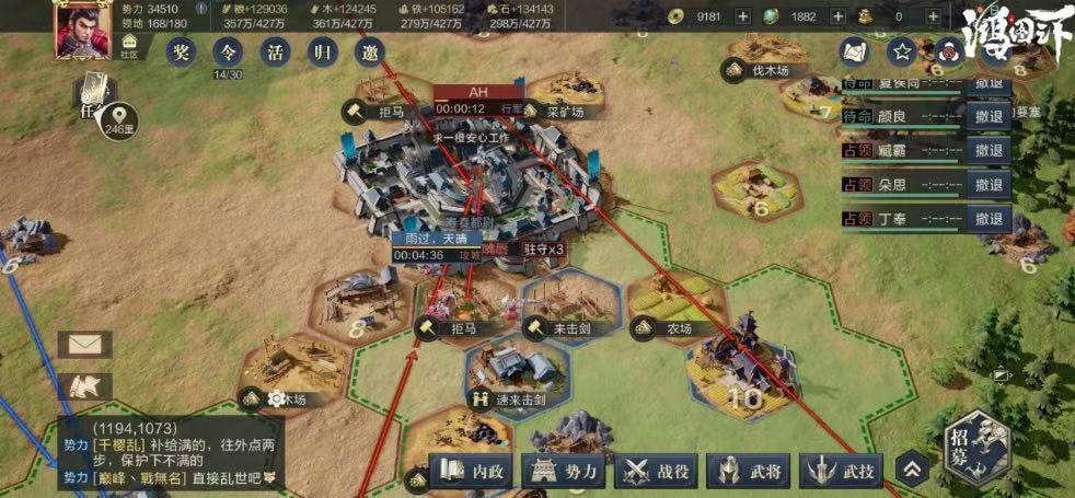 巅峰计划:拿“平春”、抢“当阳”、灭江山。部署为:①当阳,主力0+拆迁2万,意在抢关;②平春,主力全部+拆迁全部,意在全力拿下平春。
