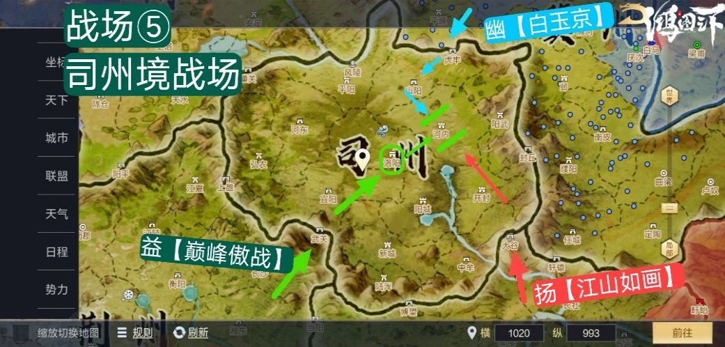 赛季局势呈三足鼎立,为:益【巅峰傲战】、扬【江山如画】、幽【白玉京】,以下简称巅峰、江山、白玉。