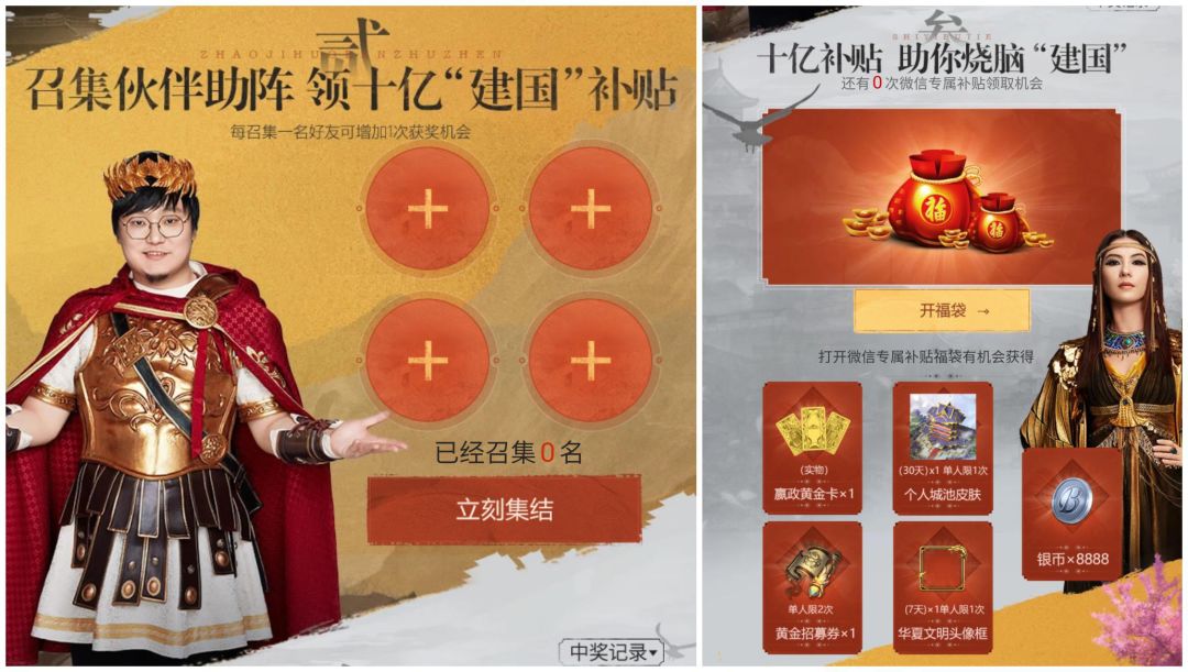 目前,《征服与霸业》多文明之战的第一场较量抢先打响——华夏文明与罗马文明对抗的“军团集结”福利活动火爆进行中,代表罗马文明的张柏芝和王建国,需要你的“站队”助力!活动期间,玩家加入喜欢的阵营,邀请你的战友前来助阵,就能一同领取惊喜“福袋”——华夏文明阵营的玩家有机会解锁【嬴政黄金卡】等福利,罗马文明阵营的玩家有机会解锁【恺撒黄金卡】等福利!