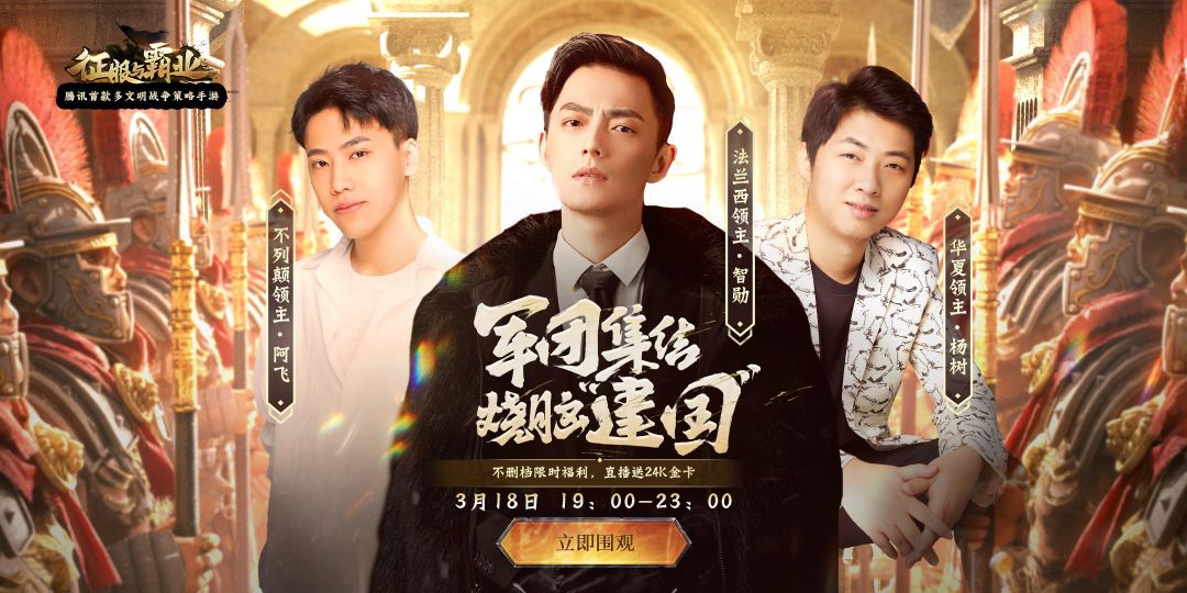目前,距离《征服与霸业》全平台上线已不足48小时,多文明领主“埃及女王”张柏芝、“罗马领主”王建国、“法兰西领主”智勋、“华夏领主”黄旭东、“罗马领主”Amsssss现已荣耀集结,期待着广大玩家3月18日一同烧脑“建国”领十亿补贴,打响多文明之战!