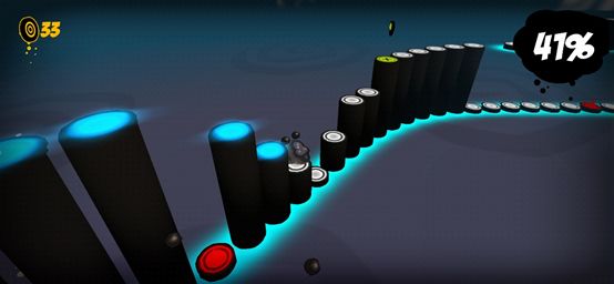 惯性误导就是设立一系列相同规律或者节奏的路障,让你形成惯性思维,或者“惯性的”手感,然后在后面再设立一个不同于此惯性,并且需要你快速反应的路障,来收割你的小墨点。