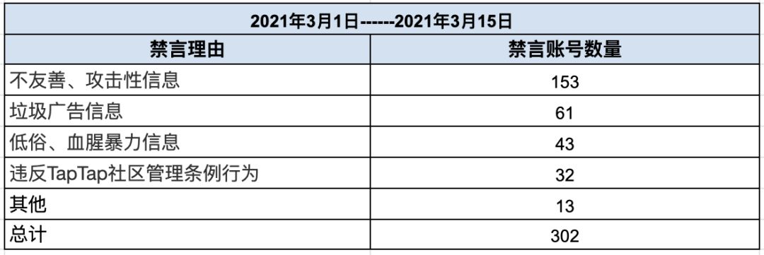 近两周的禁言总量为302个,这方面有了明显的改善,Taper们在日常交流中都能做到遵守条例规范,希望各位Taper们继续发扬和谐讨论游戏的习惯和精神,分享更多元化的游戏内容!