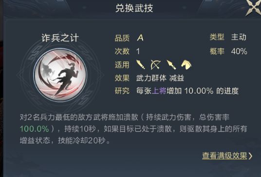 前期开荒最佳过渡战法,输出能力高,且释放目标为兵力最低敌方武将,对于开荒针对主将效果十分好,后期给予程普做驱散效果,开荒最佳过渡战法。