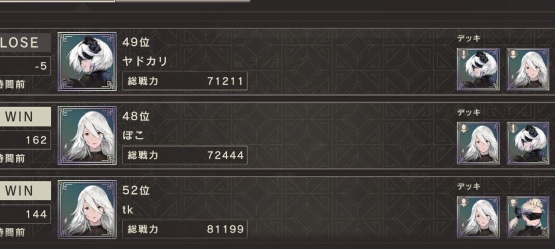 嗯 之后还会在这个贴继续讨论竞技场的 功利是图奖励 私心则是弱交互游戏当中的Pvp也就硬当是交互手段了 虽然NierRe并非实时的战斗 但搭配武器和记忆以及连招竟也有些本格回合的调调了