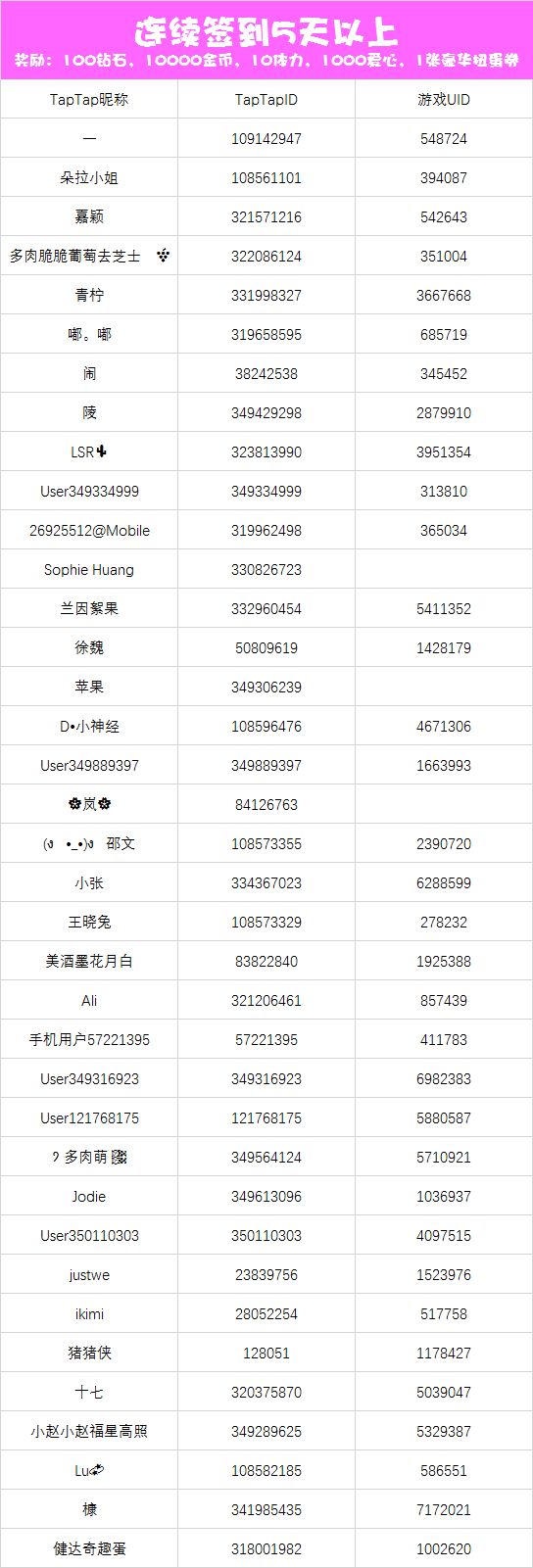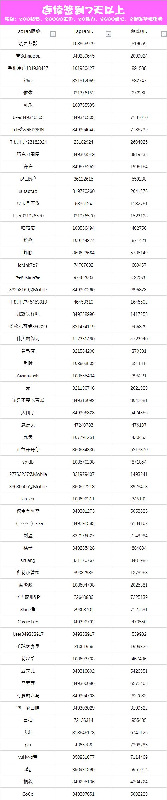 3.每位小伙伴/UID只计算一次连签奖励,以最高连续签到天数为准,获得对应最高奖励
