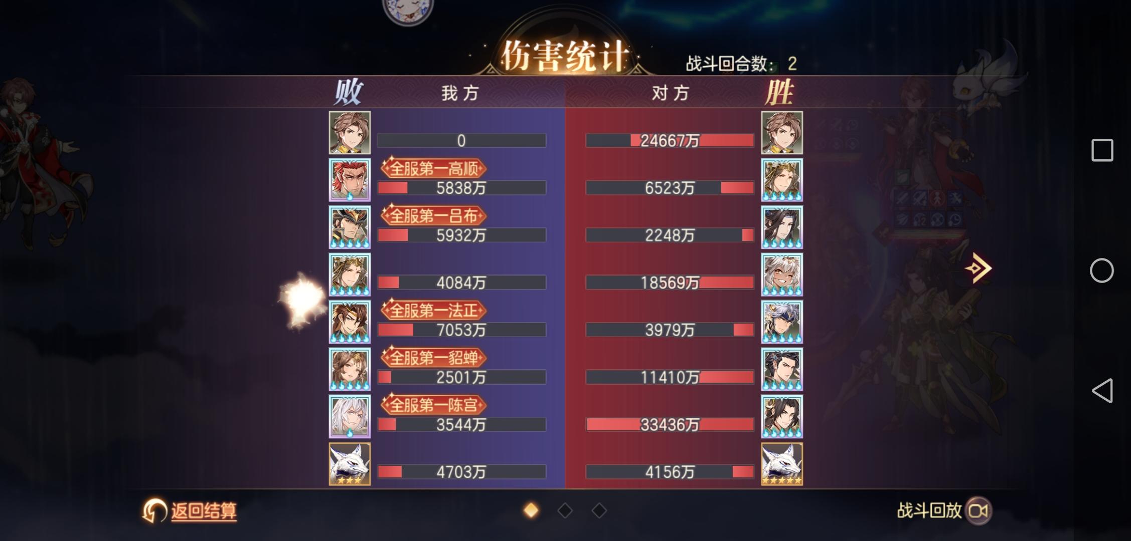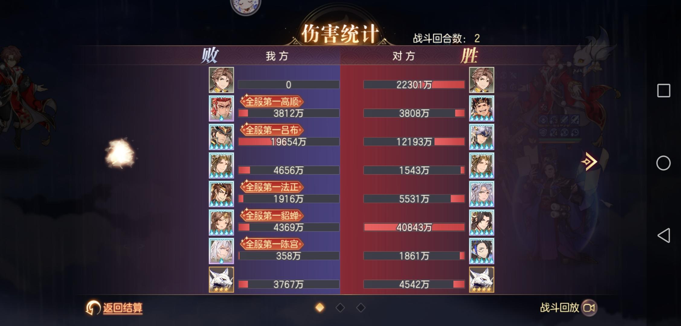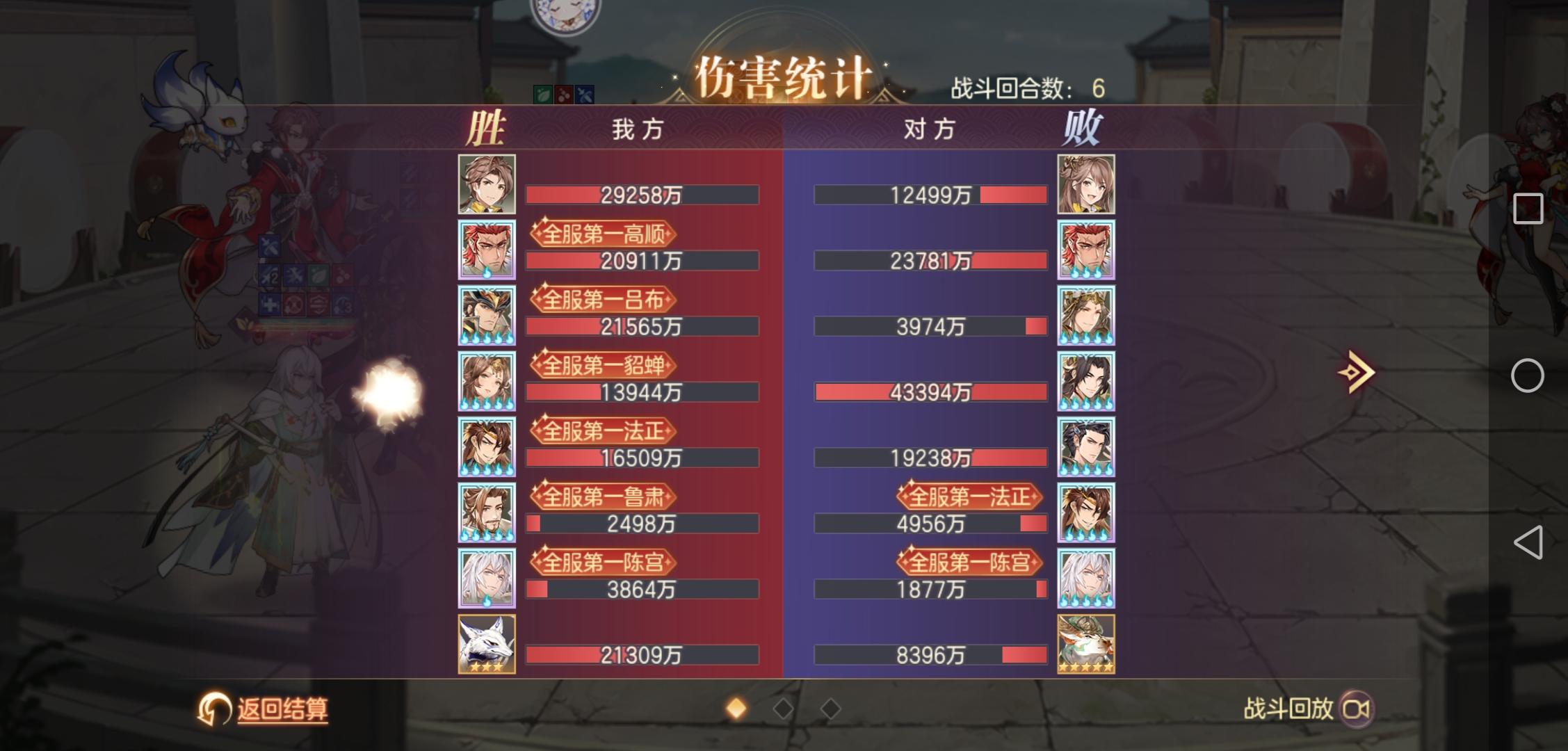 特意针对了下风雷姜维队,本来觉得一般般,直到如图所示被人暴揍,一火稀有这么不堪吗?明天都不想追单五火了,强度数值太低了,不紧急加强还是弟弟,虽然吕布目前最高可以一个大净输出一个亿,但对面姜维输出是你的三四倍。陈宫脆皮虽然有保命队友但照样不会阻止二回合必死的道路,且自己第一回合概率被张辽直接大死,鲁肃都保不住一火的陈宫。高顺输出不低我是没想到的,本来以为一火的高顺可以反制姜维没想到还是被人二回合清场。重点是吕布都死了,五保一还有什么意义,且机制很明显和姜维不是很搭。吕布还是弟弟,老刮痧了,反击伤害不如马云禄一个追打,总输出还不及花蔓,更何况姜维。