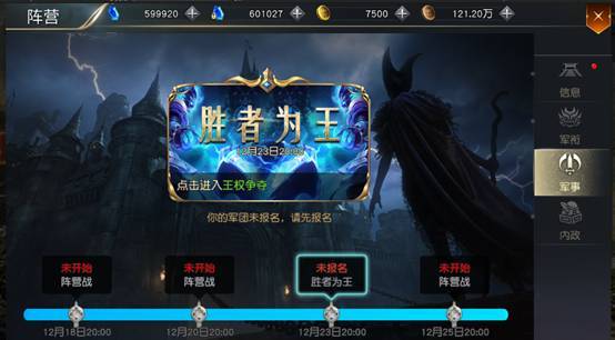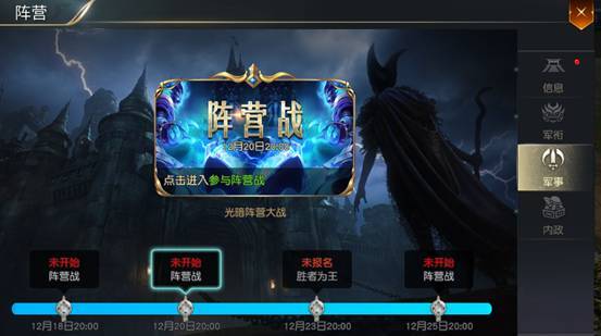 阵营军事分两种玩法:【胜者为王】和【阵营战】。