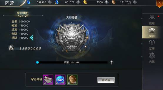 内政用于圣主册封下属,所有成员可在此处查看称号及称号特权;