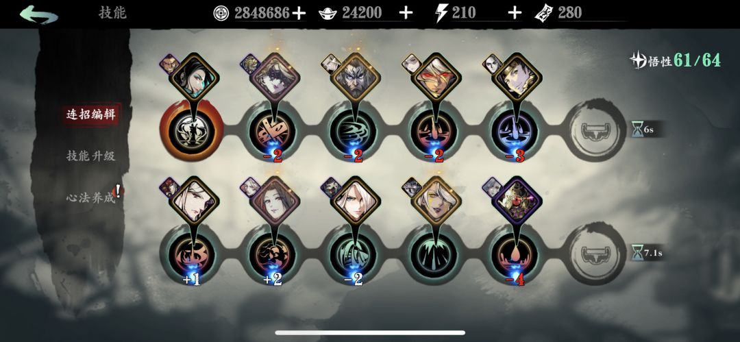 第二套技能以传递伤害为核心,心法练度足够的话推图很爽。