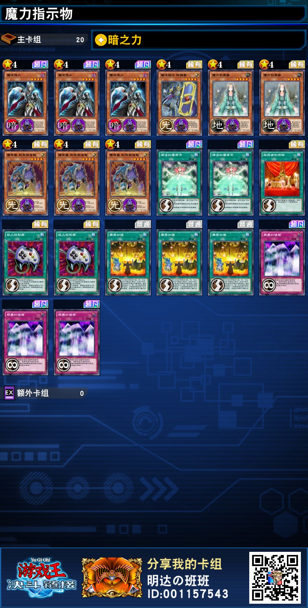 这次的魔力指示物卡组抛弃了传统的魔导王&魔法都市体系,只用下级怪配合魔导加速将魔法玩转股掌之间: