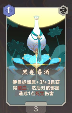 一回合加3/3,可以用来保丹青,也可以用来刷高蛇男或者战傀保证不死和更高的输出打对手一个猝不及防。