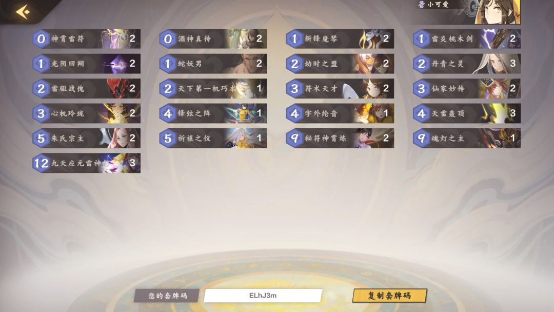 接下来讲一下对局,开局除了魂灯,宗主都可以拿,前提是有丹青(优先)或者蛇男、战傀和琴,中间靠天才、妙传和纶音(只带一张因为顺风不一定用,逆风不一定用的出来)快速上手牌刷高蛇男和战傀快速抢血(注意走位不要太耿直),看局面卖一点血。被解场之后用祈禳快速回场继续减费摸牌打输出,后面就九天雷斩杀。中间因为会摸到所有系的法术牌所以场面变化会很大,不能一种套路走到黑,重点还是看情况下牌,但重点还是前期抢血中后期九天雷斩杀。给自己挖个坑,后面讲一讲全部法术牌的用法。