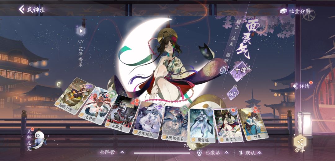己方未气绝的式神,每有一个不同派系遍抽一张牌。