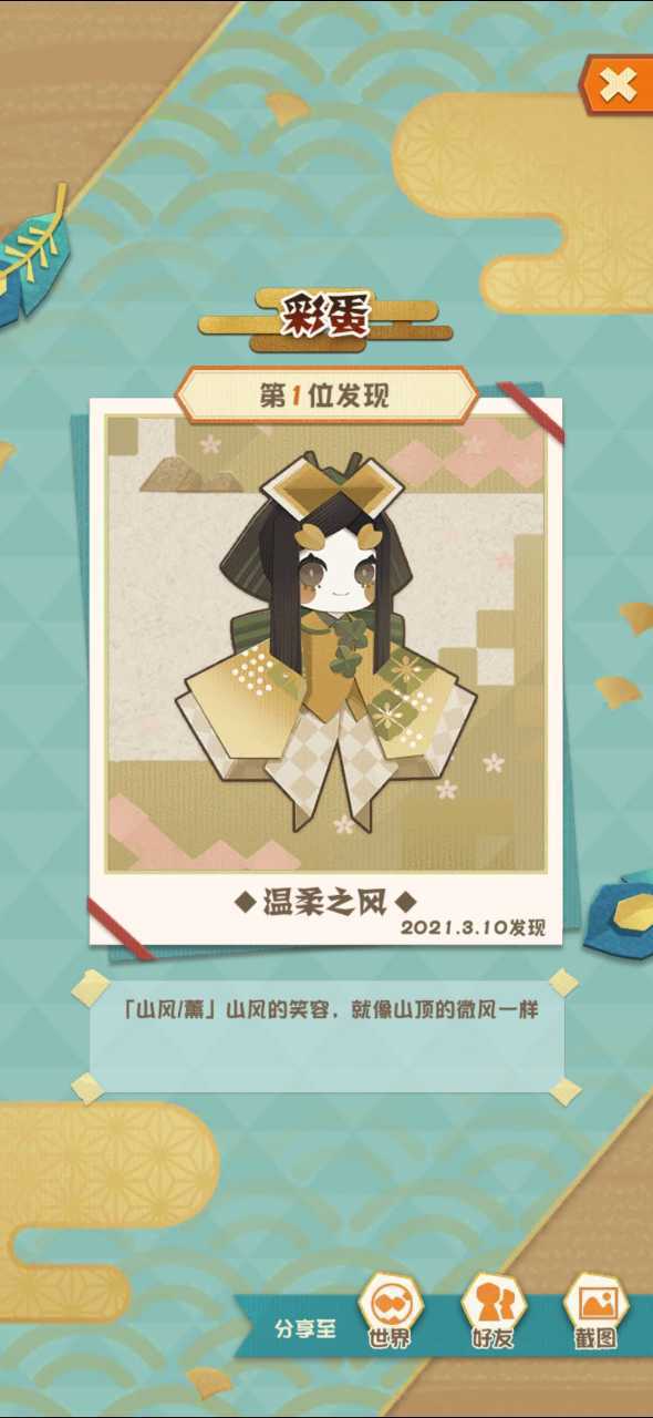 「温柔之风」山风+薰,触发条件:薰招手时点击山风