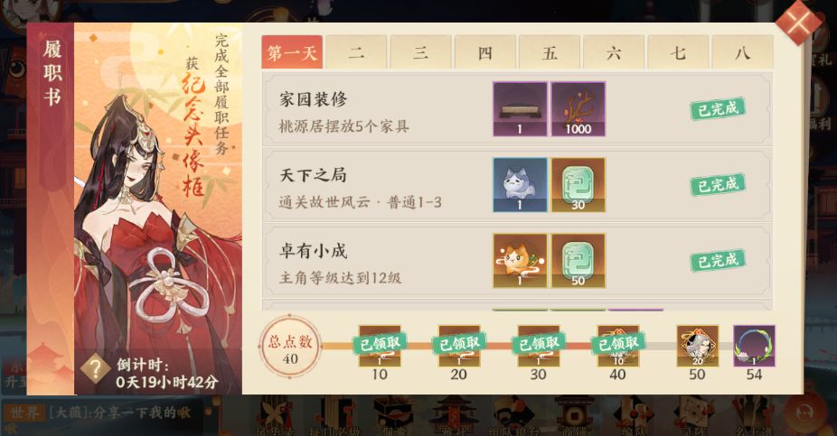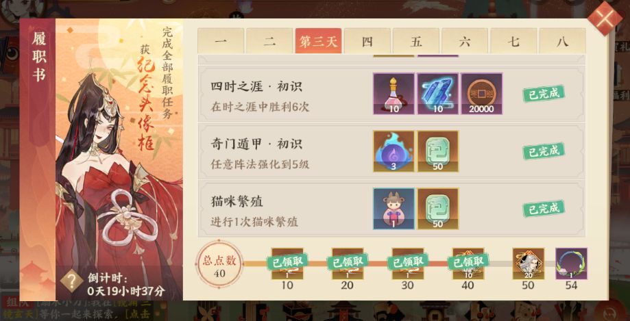 另外每个独立的履职书的任务都会不同的奖励,包括:喵灵偶、通宝、桃源木、灵石、铜币等等。
