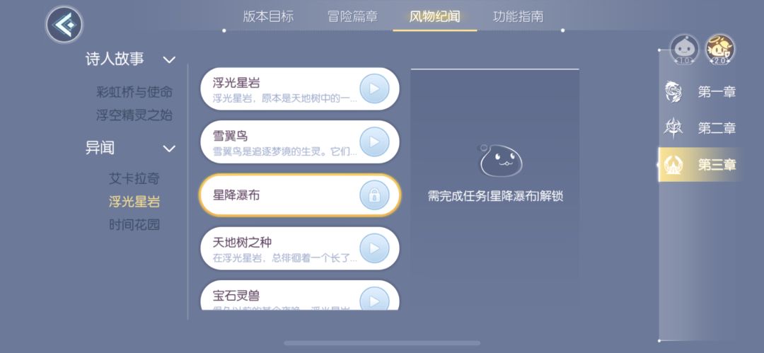 请问,浮光星岩异闻里的星降瀑布在哪里解锁?地图里走了几遍都没找到。