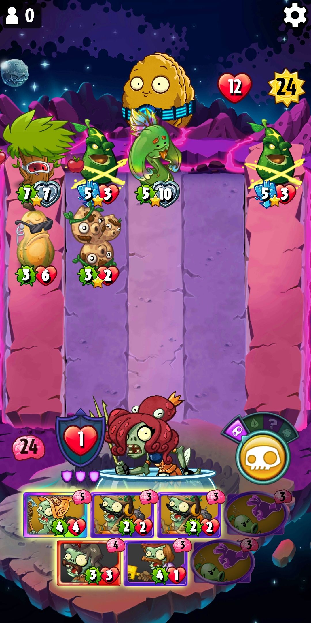 再看伤害,手卡中的僵尸一共有15攻溢出3点,可能有一路需要僵尸抗揍