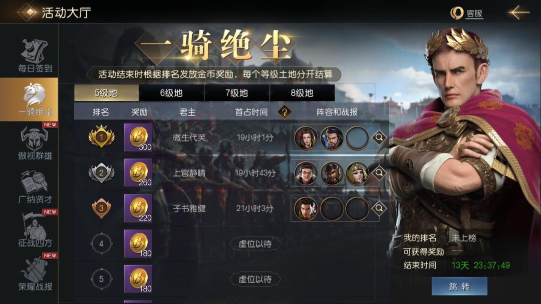 完成方式:在活动时间内,尽可能快速的首次攻占5-8级的高级地,活动结算后根据攻占高级的相对时间排名,排名靠前的玩家可获得结算(每个等级土地分开结算奖励)