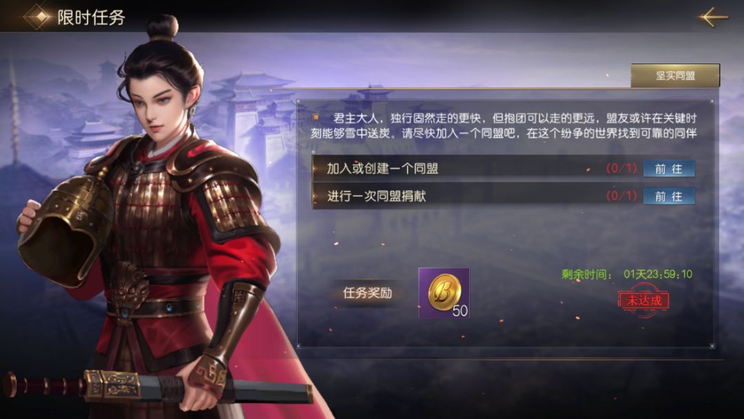 完成方式:通关部分主线任务或势力值达到一定条件触发,在限定时间内完成即可。