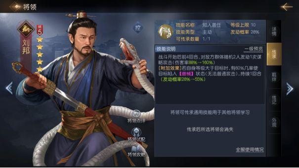征霸中有着许多谋略类输出将领,其中不少将领能够与物理型将领相互配合,提升队伍整体的输出能力,刘邦就是其中之一,下面给小伙伴们带来【刘邦】的详细解析。