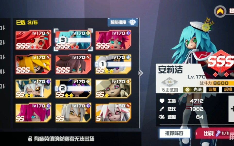 安莉洁同上,之所以不选择其他奶妈的原因是:安莉洁可以自奶,且有救急用的护盾,加上提升参赛者伤害的技能,可谓万金油参赛者。(有些小伙伴可能不明白为什么写入这样的特殊压力局,这种情况适用于微氪党:如有上述三位高练度参赛者,其他参赛者练度一般,可以通过低练度参赛者打普通或困难难度,在保证产出的情况下进行3局轮回消除疲劳,而高练度参赛者打噩梦难度,最大化的利用钥匙,获得更多培养材料。)
