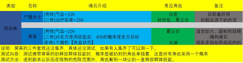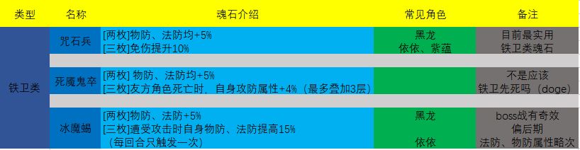 魂石搭配的下期终于来了,前两天在肝创命和测试一些魂石的效果。这期按照上期说的分类方法,汇总了包括御风类、铁卫类和祝由类的的魂石,以供参考。