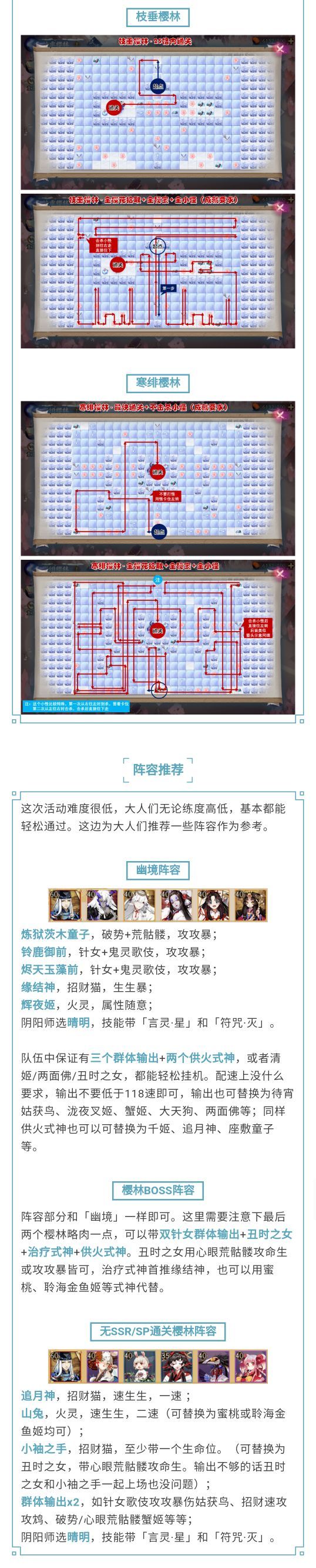 这次活动本身难度和强度确实不高,主要难点在于樱林探索的路线。总结下每天要做的事情:挂机50次秘境+做樱林成就+樱花漂流小游戏。每天不需要花太多时间就能完成活动领取奖励。最后祝大人们都能顺利抽到蝉冰雪女,一发入魂!