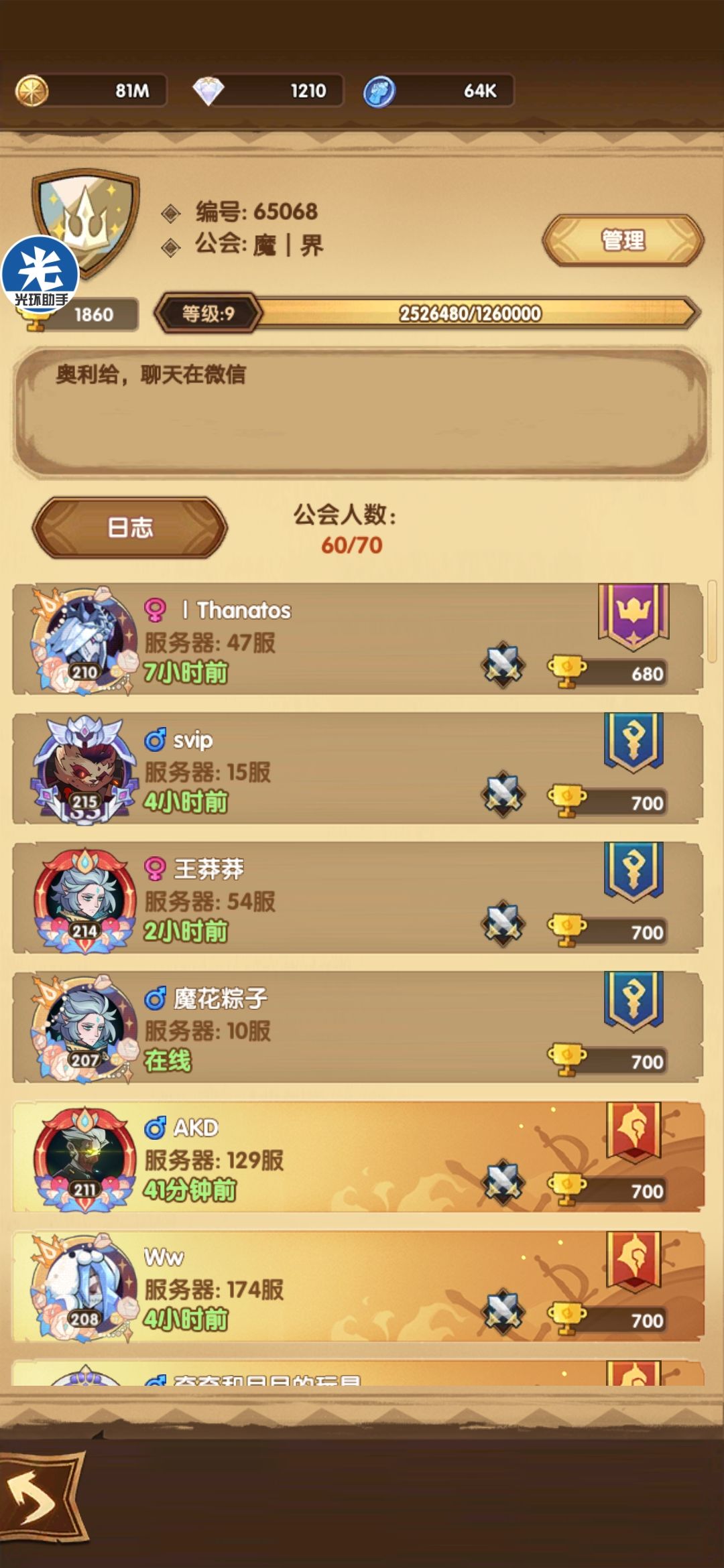 团本临近结束之际,欢迎各路好汉前来,魔界九级公会65068,目前有十个坑位,人均33章,公会成员较为佛系,公会秉承着轻松不肝的理念,其他公会有的基本福利咱们都有,梦境大佬带队领奖励,三天两剑魂,不求高排名,只求让你在“魔界”公会的每一天过得开心~过得舒心~❤️,公会成员本事不大,唯一会的就是活跃气氛!让你在这冰冷的lls策划整活下感受到一丝人性的温暖~😁😁如有意向者欢迎在下方留言或加QQ:2382591020 WX:danamaou洽谈