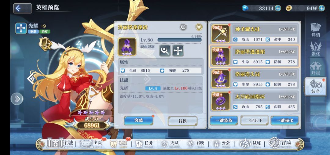 2.人物养成这里,资源紧凑的话先可着一队(7个人先养,但注意装备要多留几套,比如上面我说的奶妈三人组,装备虽然可以换着用,但有时需要两人一起上班,除了十分垃圾的ur,或者多余很多的重复ur,装备不要随便分解。如果资源足够的话,我个人倾向于拉两个刺客(以及刺客的装备),boss单体输出这一块目前只有米迦勒和风魔挑大梁,蔷薇尚且能用,绯炎输出下水道,代行者技能看着很美好,然而实际测试下来输出连蔷薇一半都打不出来,未来版本的格雷尔是pve/pvp都很强的角色,到时候是一定要吃资源和装备的,只留7个人的资源反复重置麻烦不说,装备这一块是必须要有完整的一套的,而且无法替代。