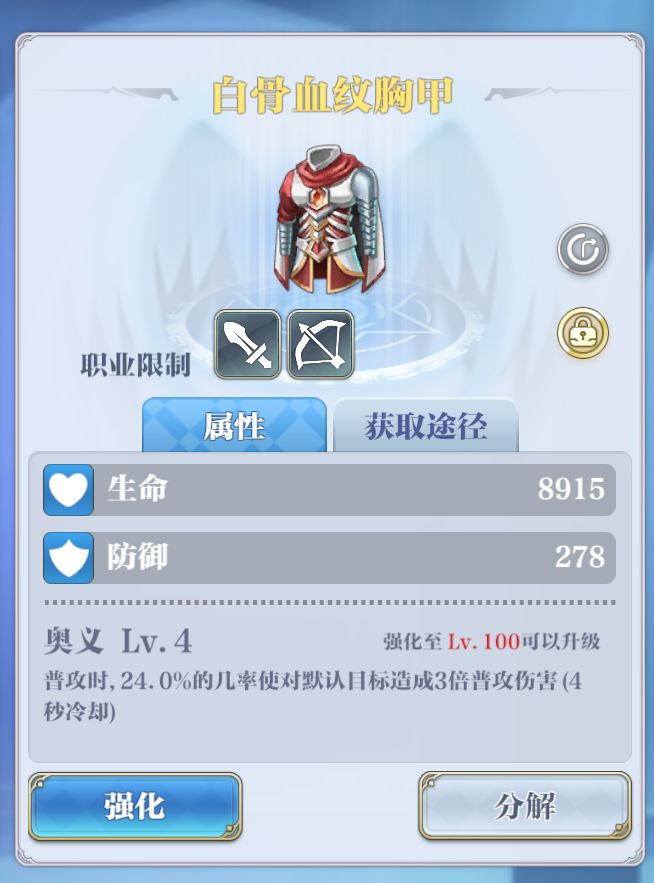 1.白骨甲大砍,概率触发三倍伤害cd延长为4s,有效输出大打折扣,现在弓/刺职业防具建议改为加攻击防具(风魔不需要暴击)以及攻击暴击双加防具,而神乐依旧是破甲衣。