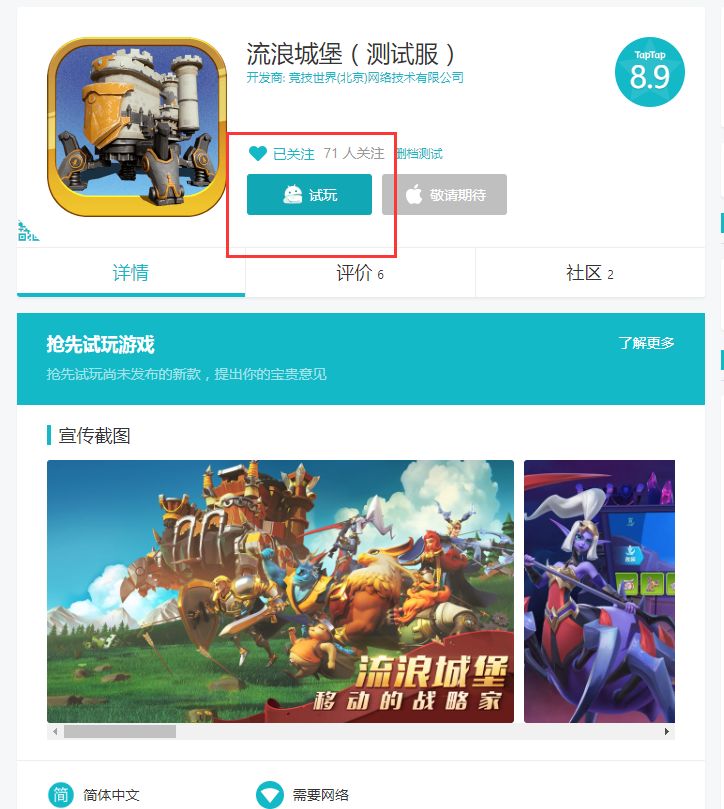 搜索《流浪城堡》点测试服,进行下载