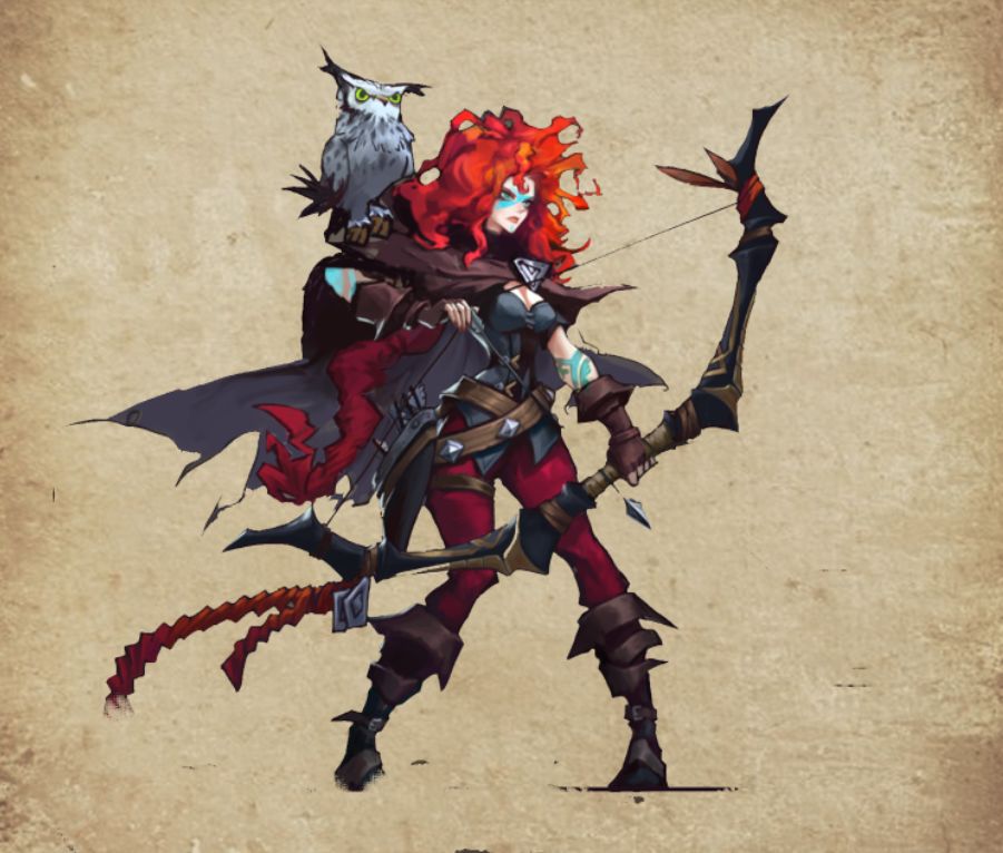 角色简介:红发的猎手少女,与名为凯西的猫头鹰同伴形影不离