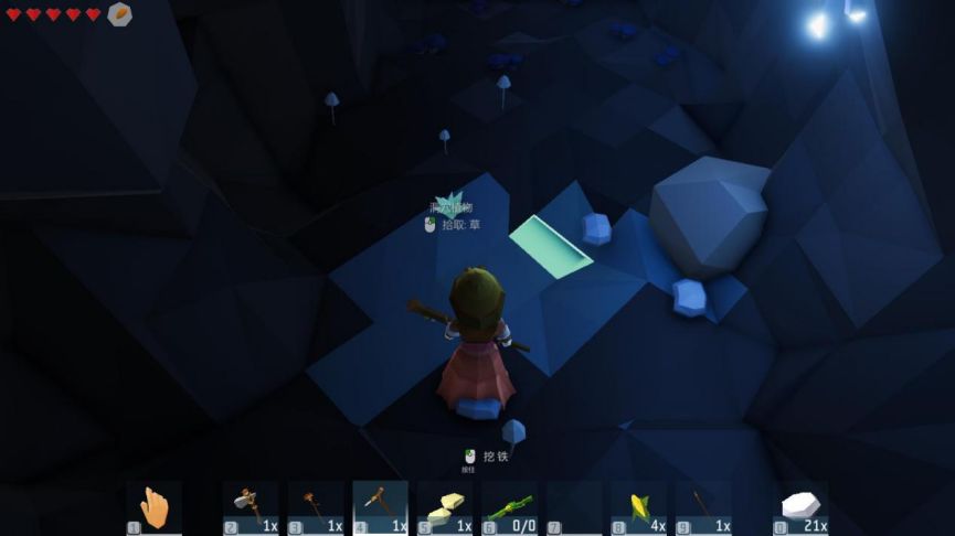 虽然洞穴深处漆黑一片,但周围散落一地的“发光晶体”确实给我帮了不少忙!