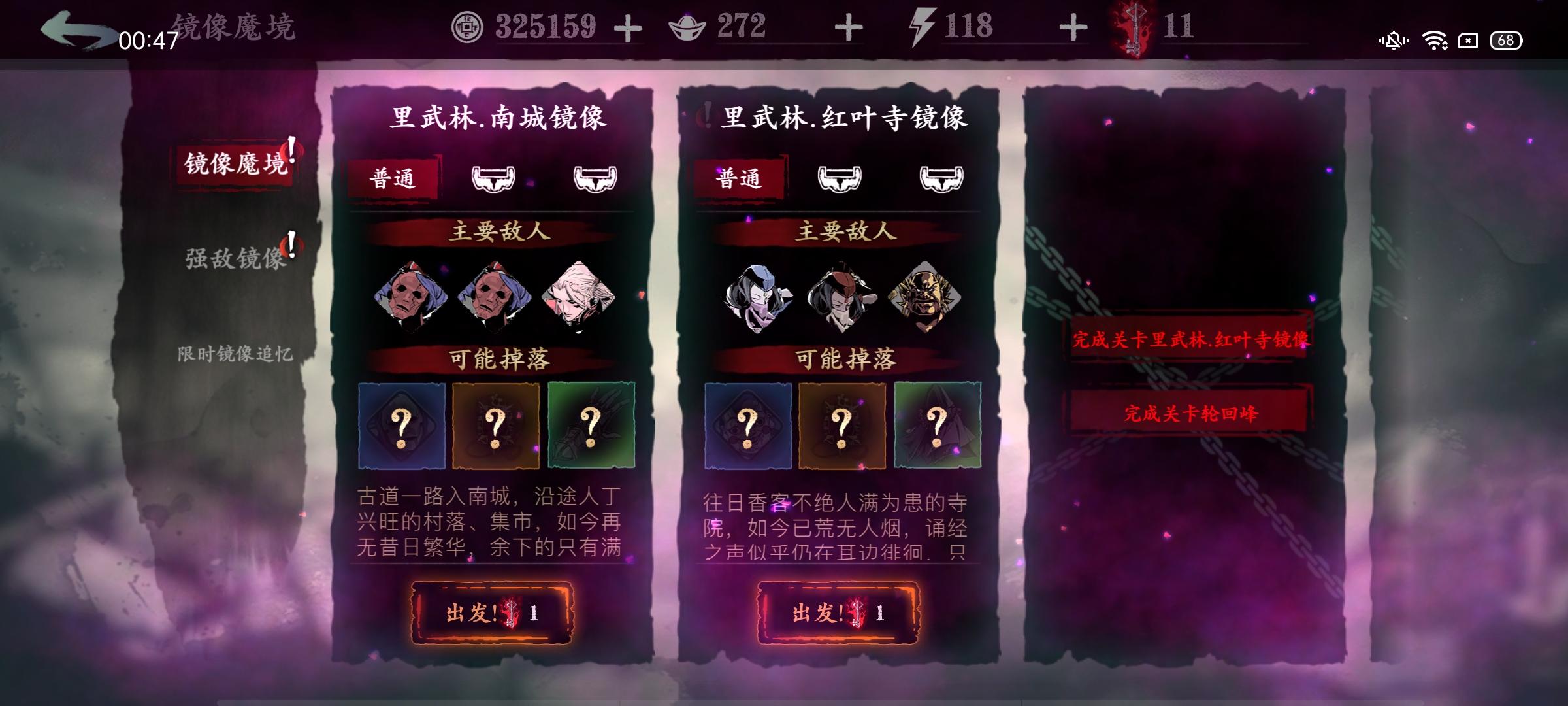 清完感叹号之后打红叶寺,最后240体力打到了诵经僧房逆天