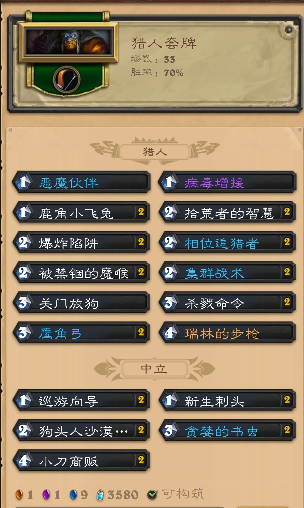 这月玩了很多卡组,最多就是宇宙牧和铺场德,也玩刀贼,黑眼术,otk瞎,法强法。这些卡组都不太好上传。直到昨天拿t7开打,今天就上传了。