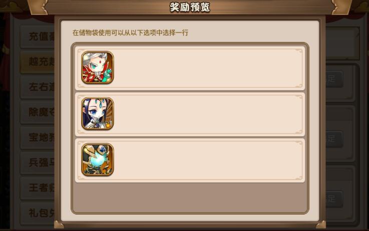 越充越值6666档次的“超级资源袋”已经修复为“超级至尊袋”,内含<九封至尊><海梦至尊><仙古至尊>三位强力伙伴。