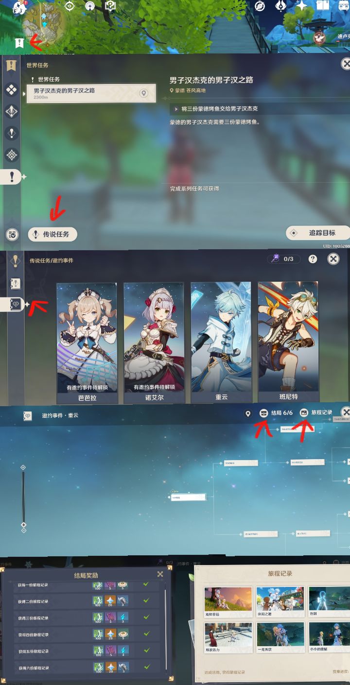 话不多说直入主题进入游戏界面点击地图左上角惊叹号符号,再点击左下角任务传说,邀约事件就出现了,芭芭拉、诺艾尔、重云、班尼特中选择喜欢的角色进行任务,