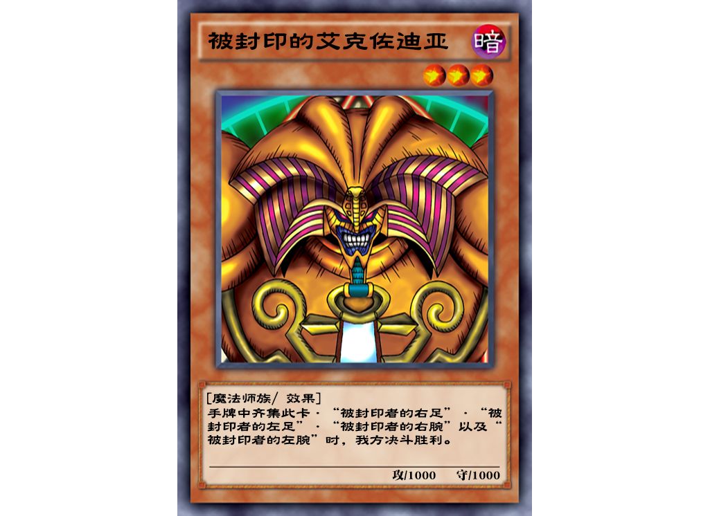 同理,我方卡组剩余两张卡时,连锁1对方发动「王牌圣杯」,连锁2我方发动「强欲之瓶」。连锁2「强欲之瓶」抽卡后未集齐「被封印的艾克佐迪亚」,卡组仅剩1张,连锁1「王牌圣杯」掷出反面,要我方从卡组抽2张卡,我方将因卡组没有卡抽而落败。