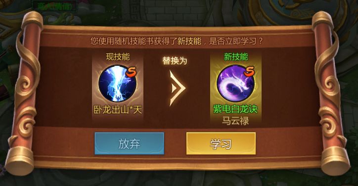放弃:取消本次操作,随机技能书消失,放弃不退还金币。