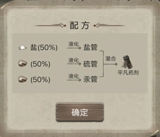 )可代替熔岩药剂,配方不稳定,一般三木研磨,三草研磨,三石液化,三盐液化出的概率大一些18.平凡药剂
