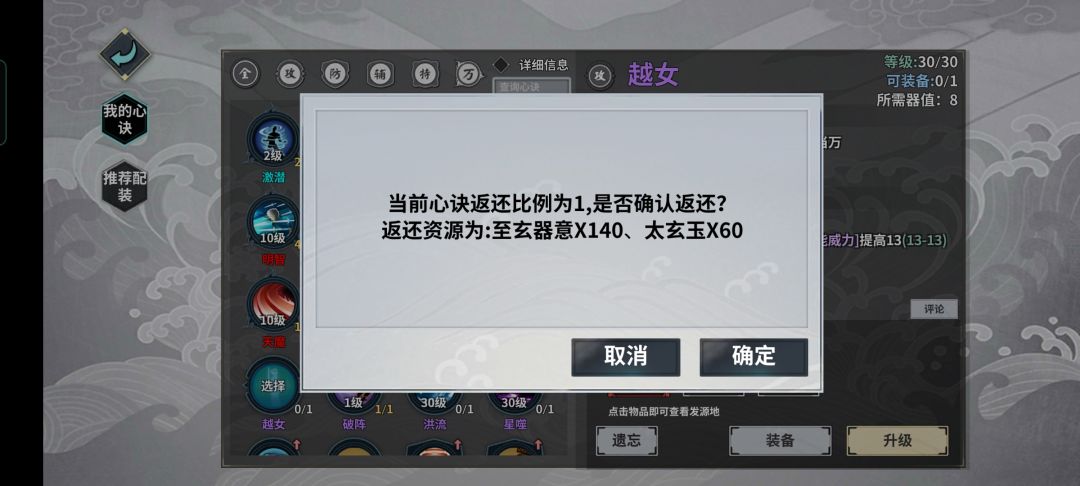 进入心决界面,将所有心决遗忘(返还比例1:1)