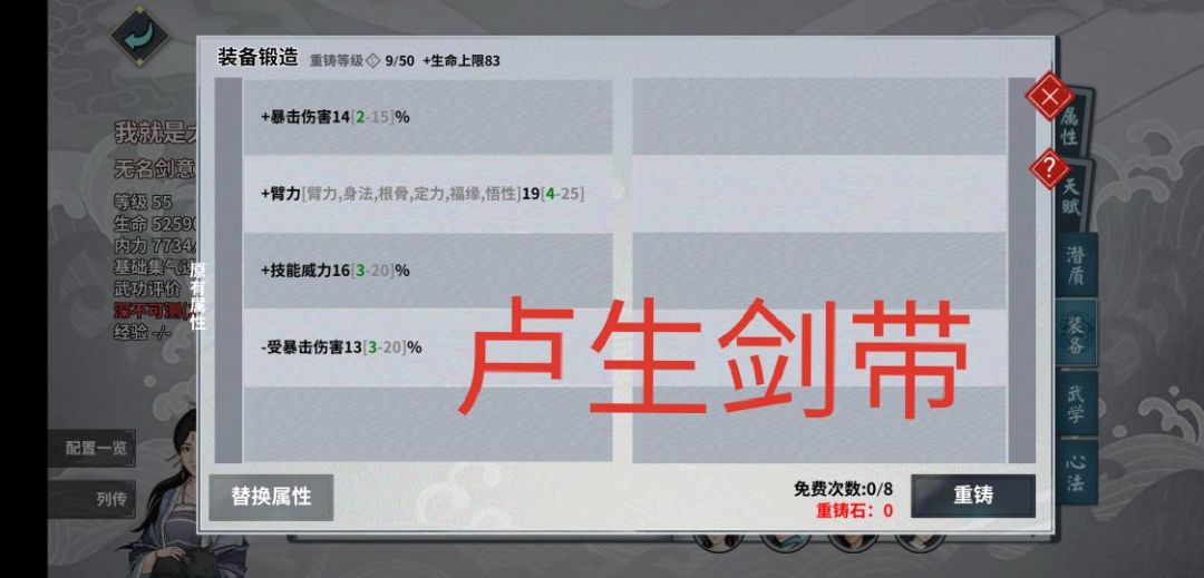 卢生剑带在遇到高臂力的可以3词(不要减爆伤)