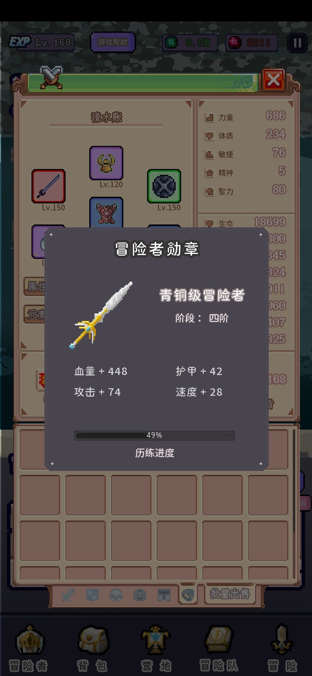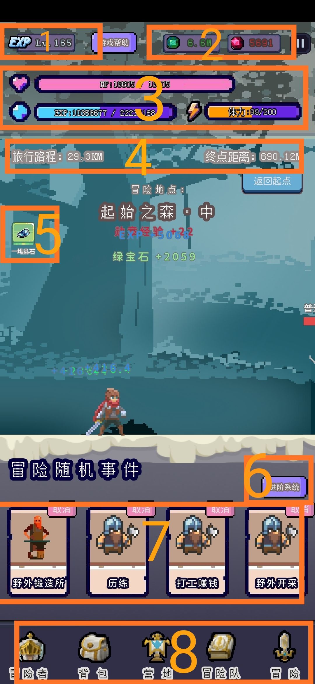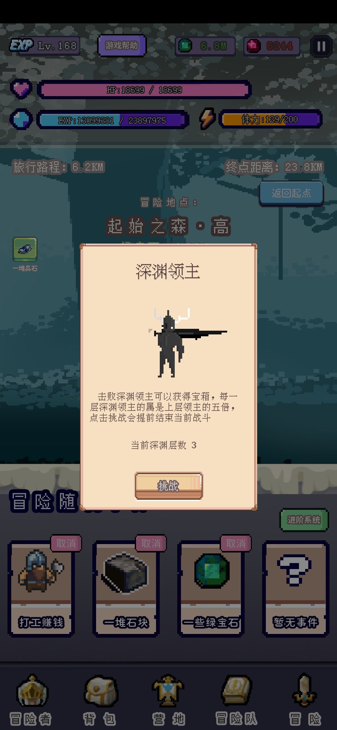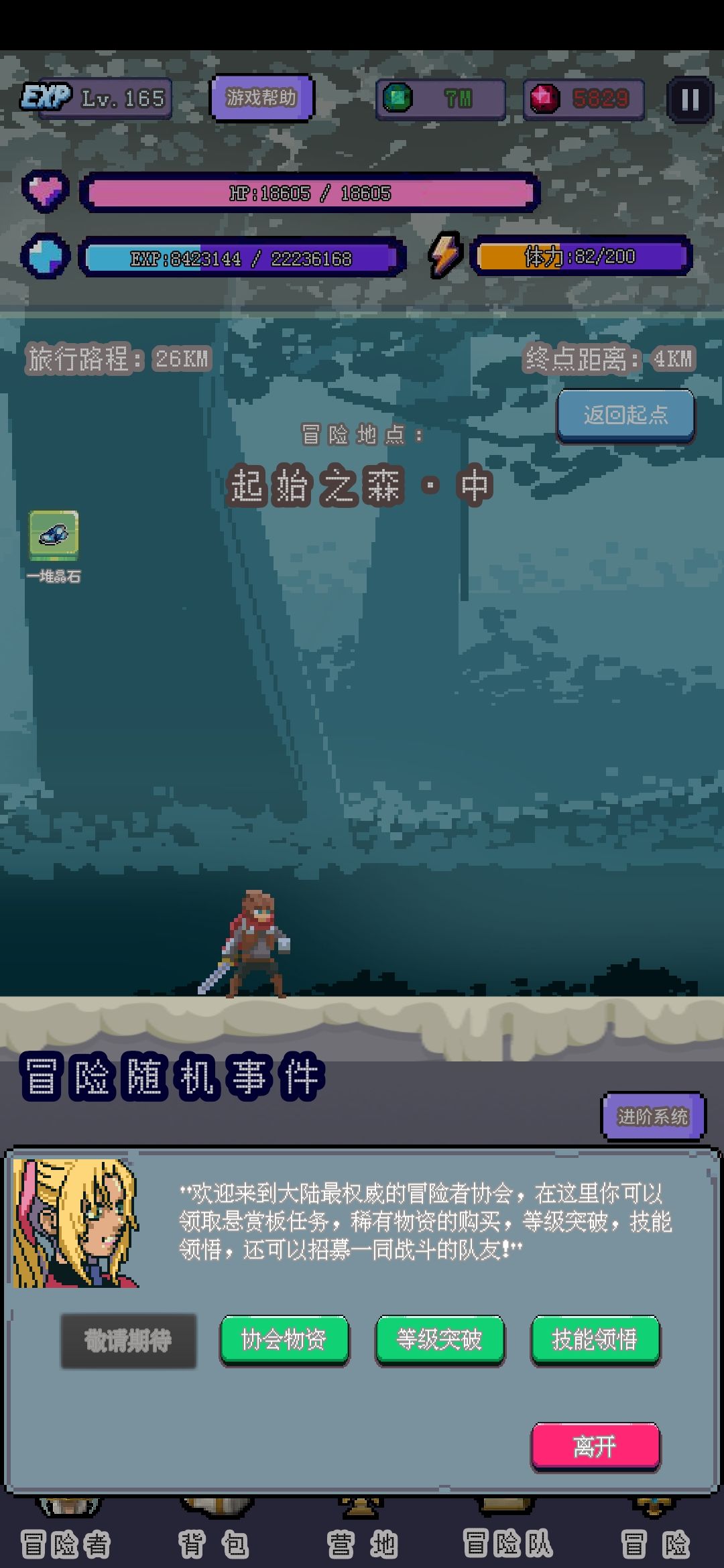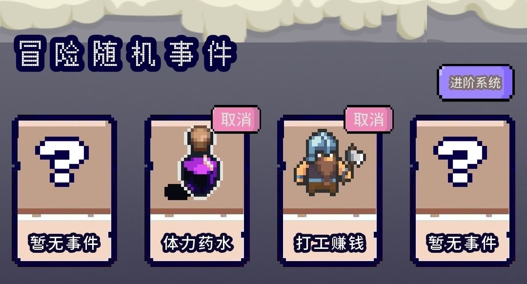 冒险功能就是换地图,打不过了退回上一张图刷